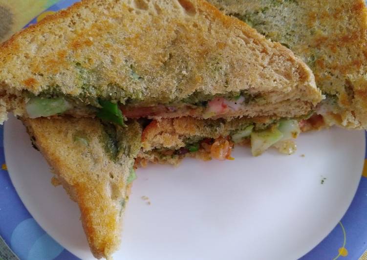 - Apply green chatni on bread and place vegetables sauce mixture in center and grill it.